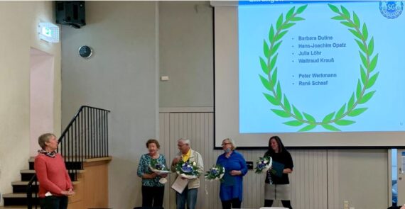 Wir freuen uns, dass wir im Rahmen der SG-Jahresmitgliederversammlung Ehrenurkunden und Blumensträuße an Barbara Dutine, Julia Löhr, Hans- Joachim Opatz und Waltraud Krauß überreichen durften. Hiermit bedanken wir uns herzlich für ihr langjähriges ehrenamtliches Engagement in unserem Verein. Peter Werkmann und Rene Schaaf waren am Sonntag leider verhindert und werden […]