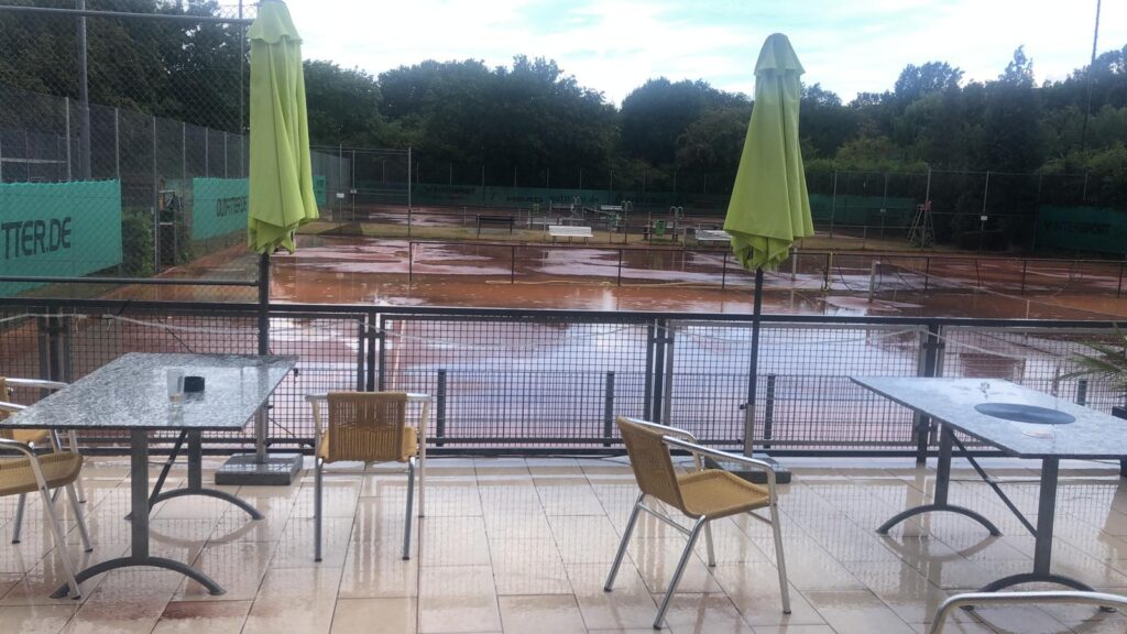 Auch so können die Plätze manchmal aussehen. Nach einem Gewitter mit Starkregen in der Mittagszeit…